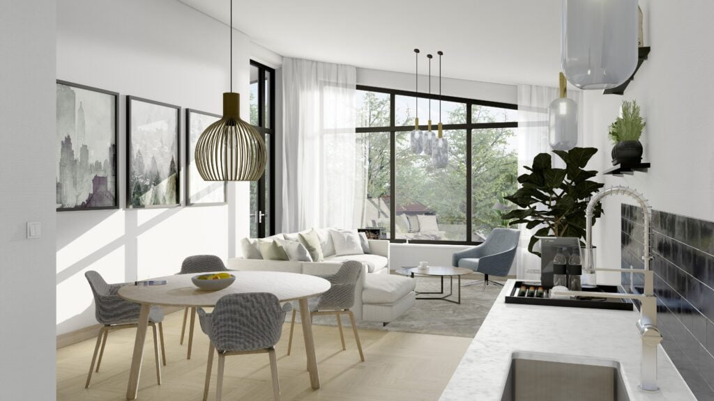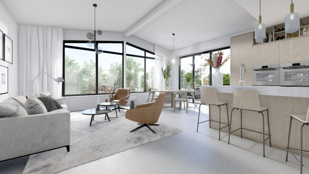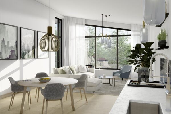 De verwarming en warmwatervoorziening in de appartementen wordt verzorgd door een lucht- waterwarmtepomp. Verder worden de appartementen uitgevoerd met een gebalanceerd ventilatiesysteem met warmteterugwinning (WTW). Door de toepassing van de energiezuinige maatregelen (waaronder de warmtepomp), zijn PV-panelen niet nodig.