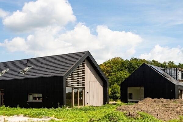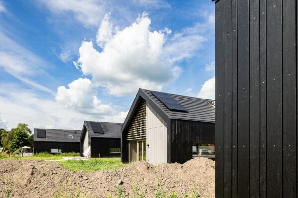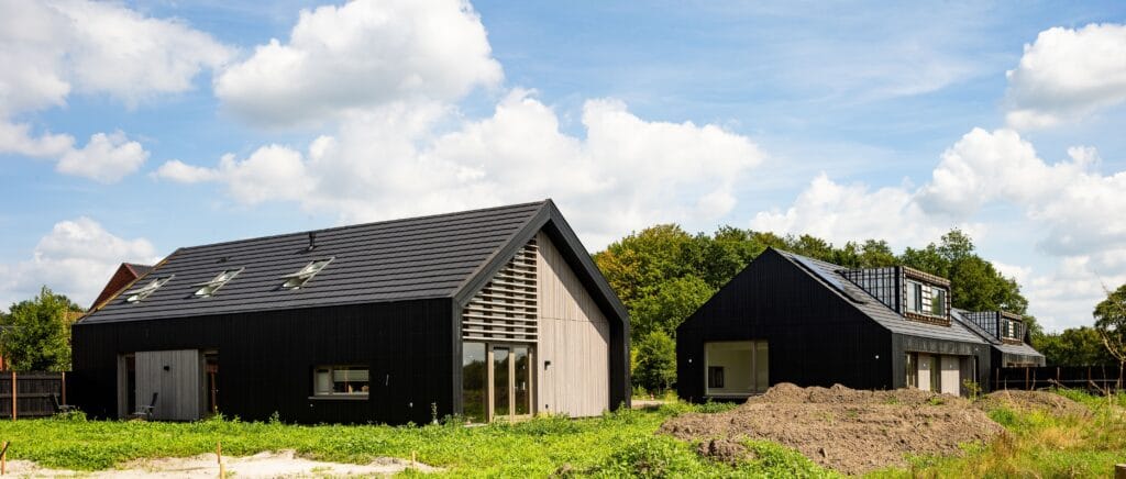 De 7 Schuurwoningen zijn in twee varianten ontworpen. Type A is in de lengte gepositioneerd op de kavel en kenmerkt zich door het robuuste overstek op de kopgevel. De topgevel van dit type is voorzien van openslaande deuren en houten lamellen tegen houten staanders. Type B is in de breedte georiënteerd op de kavel en heeft het overstek eveneens aan de terras-zijde.